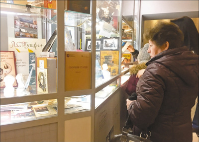 莫斯科市民在普希金故居博物馆中选购纪念品。 本报记者 吴 焰摄