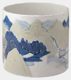 青花加紫山水笔筒(清康熙)