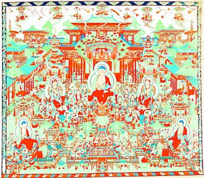 临摹盛唐西方净土变图 资料图片