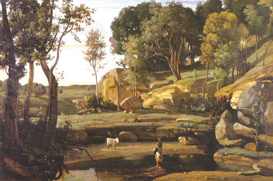 图为卡米耶·柯罗油画《意大利风光》