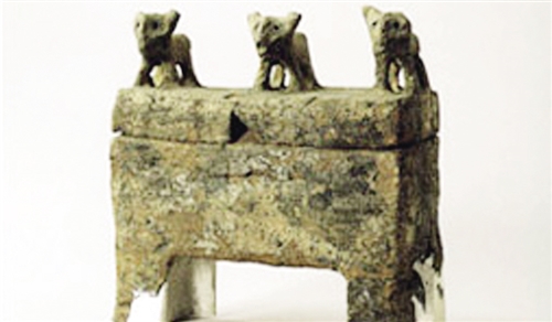 而现藏于甘肃省博物馆的四坝文化三狗纽盖彩陶方鼎器盖上的三只狗却完全体现出了不同的气势。它们四肢直立,昂头翘尾,姿态生动而逼真,显示出一种进攻和拱卫的姿态。这或许与当地的民风相关,三只狗傲然的姿态不由让人联想,它们的主人又是何等风采?