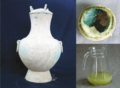 图③:铜壶、酒液。