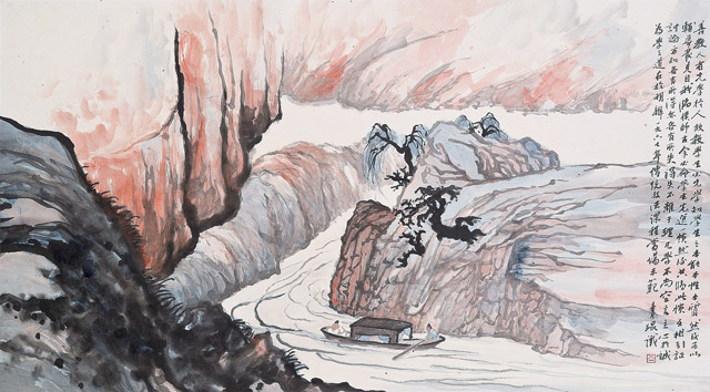 3月16日,由中国美术馆、香港中文大学文物馆联合主办的“自我有乾坤——吕寿琨与早期水墨运动”在中国美术馆举行,展出了吕寿琨上世纪40年代末至70年代初创作的最具代表性的51件作品,全面而生动地呈现出吕寿琨的艺术创作脉络,同时折射出香港水墨艺术运动发展的一个侧面。展品中不乏许多传承传统笔墨的山水画作品,包括临摹古代大师的经典之作。借由这些作品,艺术家雄浑的笔墨功夫与深邃的传统文化底蕴跃然纸上。展览将持续至4月14日。 图为《急流逆舟》 (小 辰)