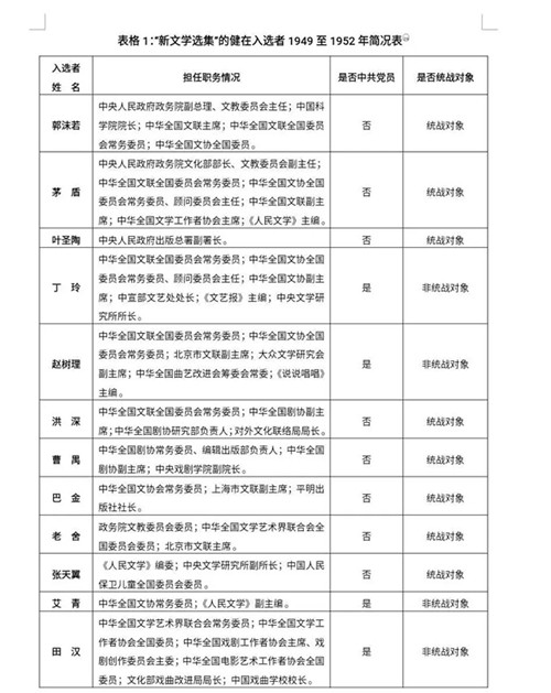 电竞竞猜看看这些最终入选“新文学选集”的健在作家名单,并微观考察其基本的政治倾向及新政权对他们的“态度”,统计情况如下: