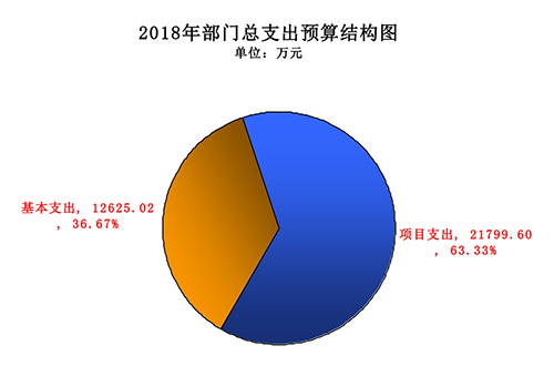 电竞竞猜官网2018年支出预算34424.62万元,其中:基本支出12625.02万元,占比36.67%;项目支出21799.6万元,占比63.33%。