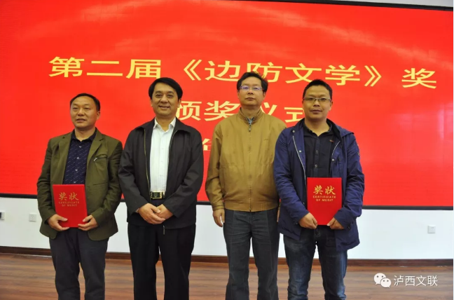 开幕式上,进行了《边防文学》奖颁奖,《边防文学》主编欧之德宣布获奖名单,李朝德的散文《今夜又起风》、呂冀的小说《一匹马的遭遇》、袁嘉敏的诗、朱镛纪实文学《扎西“红飘带”》、吕倬云的散文 《一个老兵》、王鹏举的报告文学《在刀尖上行走》、王文涛的散文《我在天边守望你》获奖。