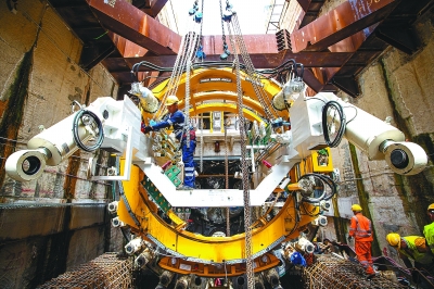 在以色列特拉维夫轻轨红线施工现场,工人在组装盾构机。中国中铁旗下子公司与以色列公司组成的联营体于2015年5月成功中标以色列特拉维夫轻轨红线项目TBM段西标段。图为新华社发