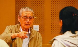 蓝天野在《大讼师》排练现场指导青年演员。本报记者 郭冠东摄/光明图片