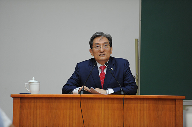 随后,卢英敏大使为正在鲁院学习的第三十四届中青年作家高级研讨班学员作了题为“大使眼中的唐诗”的讲座,重点向学员们讲述他对我国唐代诗人杜甫及其诗作的钟爱与理解,对杜甫诗句中体现的现实主义、“仁爱”思想以及忧国忧民的人道主义情怀进行了阐述,并简要介绍了以杜甫诗歌为代表的唐诗对韩国文化的影响。