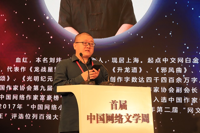 我是血红,一个写了十六年网文,还在坚定、坚持地努力创作的网络作者。非常荣幸参加这次盛会,受邀作为作家代表发言,于是也想说一些感触。