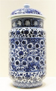 青花锦地花卉纹壮罐 摄影/本报记者 王晓溪