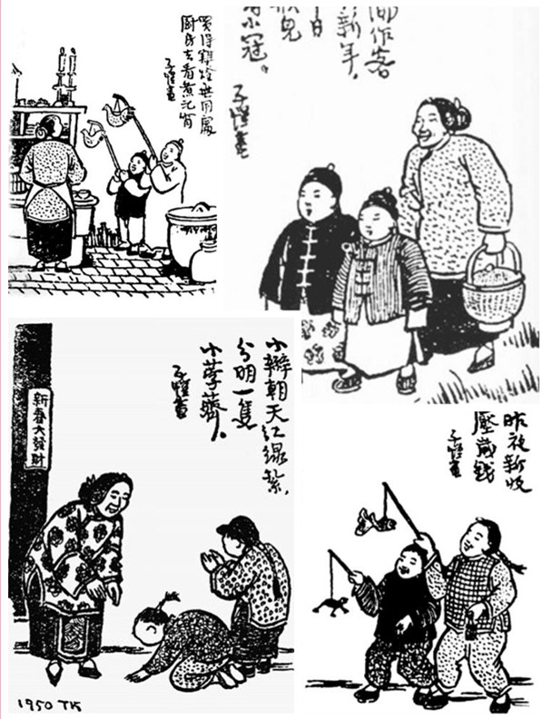 新年拜岁换新衣,白袜花鞋样样齐。