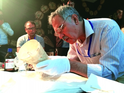 5月24日上午,随着阿富汗国家博物馆文物修护专员阿卜杜拉小心细致地操作,有着蜂巢纹理的大口玻璃杯终于完成了最后的修复,于次日首次在中国与公众见面。由于种种原因,此前玻璃杯一直没有修复完好,此次完成修复使这批阿富汗文物在郑州的展览第一次实现了“全家福”亮相。