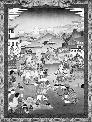 众人还在为难之际,嘉察协噶的儿子扎拉高声喊:“父王曾再三告诫我,一定要听格萨尔大王的命令,大家不要再说了。”