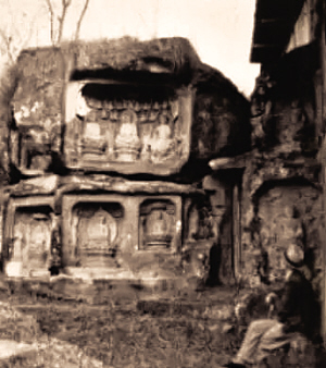 梁思成在北山石刻留影。(中国营造学社摄 1940年)