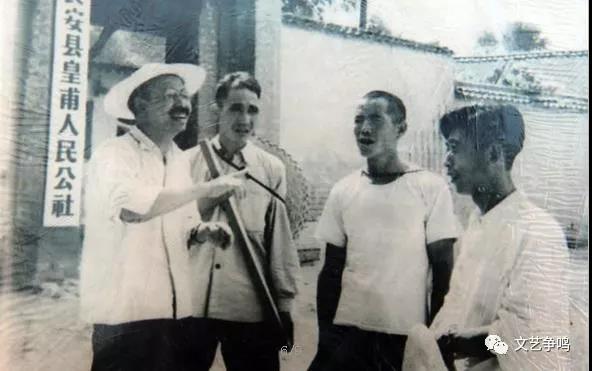 柳青(左一)与皇甫村民在田间交谈