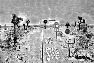 正是由于他不赞同单点透视的观念,认为单点透视不符合人们在实际场景中去观察的方式,使用广角镜头或鱼眼镜头又会使拍摄的对象变形,于是他会用相机拍摄同一对象的不同局部,再拼合回原来的整体。不同的局部照片之间并不是无缝衔接的,而是会出现重叠、错位,甚至视角的偏移。霍克尼创造的这种特殊的拼贴照片的方式,给人以奇妙的观感,同时也创造了一个全新的奇妙世界。这也是他对视觉艺术的独特贡献。