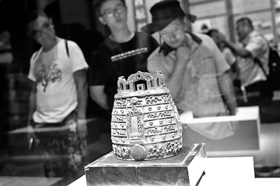 昨天上午,“古坛孕新生,名园惠万民——天坛公园开放百年展”在天坛公园北神厨开展,天坛仅存的一枚明代鎏金铜编钟与市民游客见面。北京青年报记者了解到,天坛自1918年起作为公园向公众开放,至今走过百年,天坛公园年接待游客近2000万人次。