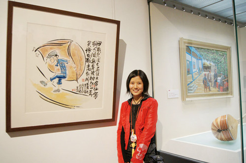 1吉建芳在展厅王蒙年轻时候的漫像前-中国国家博物馆-2013年9月
