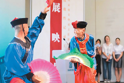 非遗传承人是非物质文化遗产的重要承载者和传递者,但由于传承人的不可取代性,加之普遍年事已高,少部分非遗项目仍存在“人在艺在,人亡艺绝”的危险。2015年,国家级非物质文化遗产代表性传承人抢救性记录工作全面启动。2018年5月,首批抢救性记录项目验收完成,最终有227个项目通过了专家评审,其中25个被评选为优秀项目。图为80岁的国家级非物质文化遗产代表性项目“昌黎地秧歌”代表性传承人秦梦雨在推介会上表演。