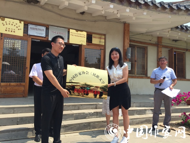 活动期间,举行了《民族文学》延边和龙创作基地授牌仪式,《民族文学》主编石一宁、副主编陈亚军授牌,延边作协常务副主席郑风淑、和龙市副市长邢伟接牌。