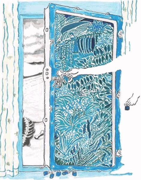 门、锁、钥匙、手。蓝色丰茂植物的大门外,露出荒芜的黑白风景。这就是金宇澄提出的意味吗?“这是个读者比作者更聪明的时代”。