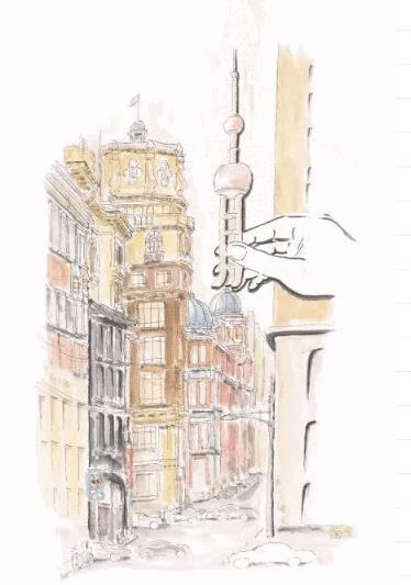 但更多时候爷叔并不解释他的画,就像这幅“剪贴外滩”,他的“不响”,背后是关于城市的隐喻。