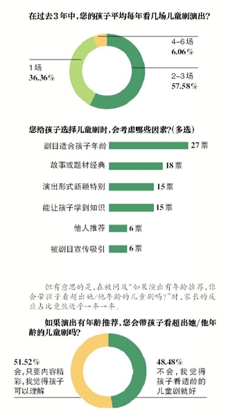 除了张雪,新京报记者也对33位家长做了个小调查,调查中发现有超82%的人在为孩子挑选儿童剧时最看重年龄匹配度。