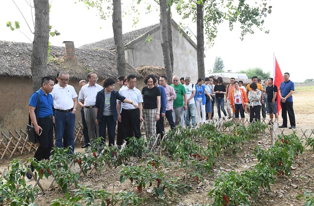 凤阳县小岗村是中国农村改革开放的主要发源地。9月6日,采访团赴小岗村采访考察,参观大包干纪念馆,走进18位村民按下红手印的“当年农家”院落,观看小岗村村容村貌,在小岗村党员活动室举行座谈会。大包干纪念馆以翔实的图文资料、丰富的展陈手法,再现了1978年大包干从酝酿、发生到发展的全过程。一走进展厅,国画《一九七八年凤阳小岗村》便吸引了大家的目光。在这幅作品里,18个农民姿态各异,神情复杂,居于中间的4个农民坚定地按下了红手印。这个具有重要意义的场景在“当年农家”得到了印证,作家们走进建于上世纪70年代的茅草房,坐在签字室里按下手印,时间仿佛重新回到了40年前的那一天。只是40年来,小岗村发生了翻天覆地的变化。
