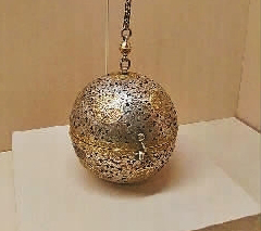 法门寺地宫出土的鎏金双蜂团花纹镂空银香囊 本报记者 李韵摄/光明图片