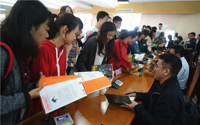 分享结束后,五位作家还接受了同学的提问,并为大家签名。(陈泽宇 文/摄)