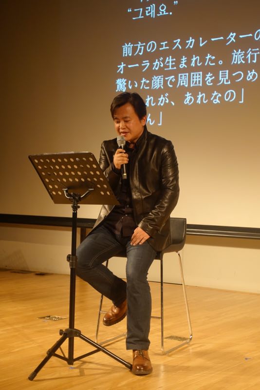 雷平阳和韩国诗人郭孝桓在“文学之夜”活动上一起朗诵