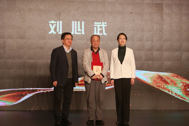 阎晶明、陈红英为刘心武先生颁奖