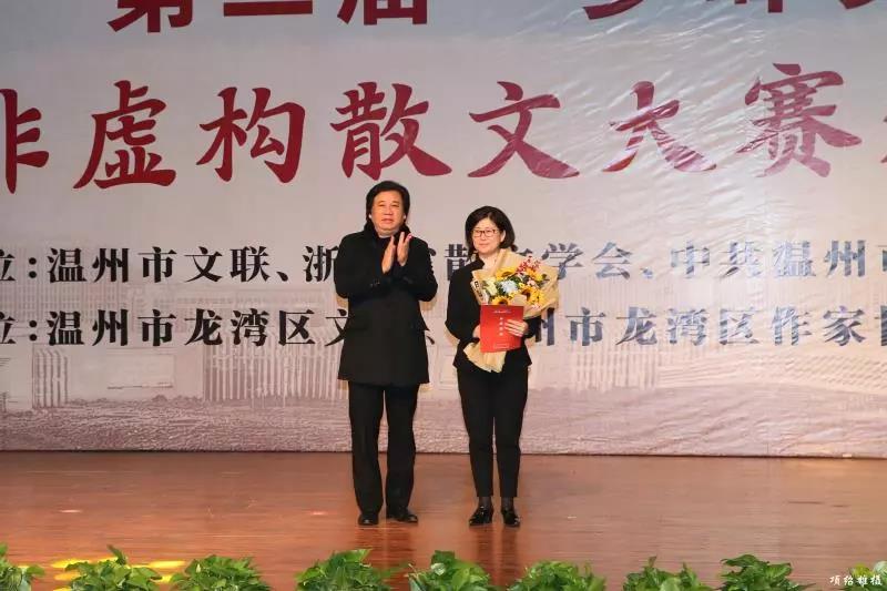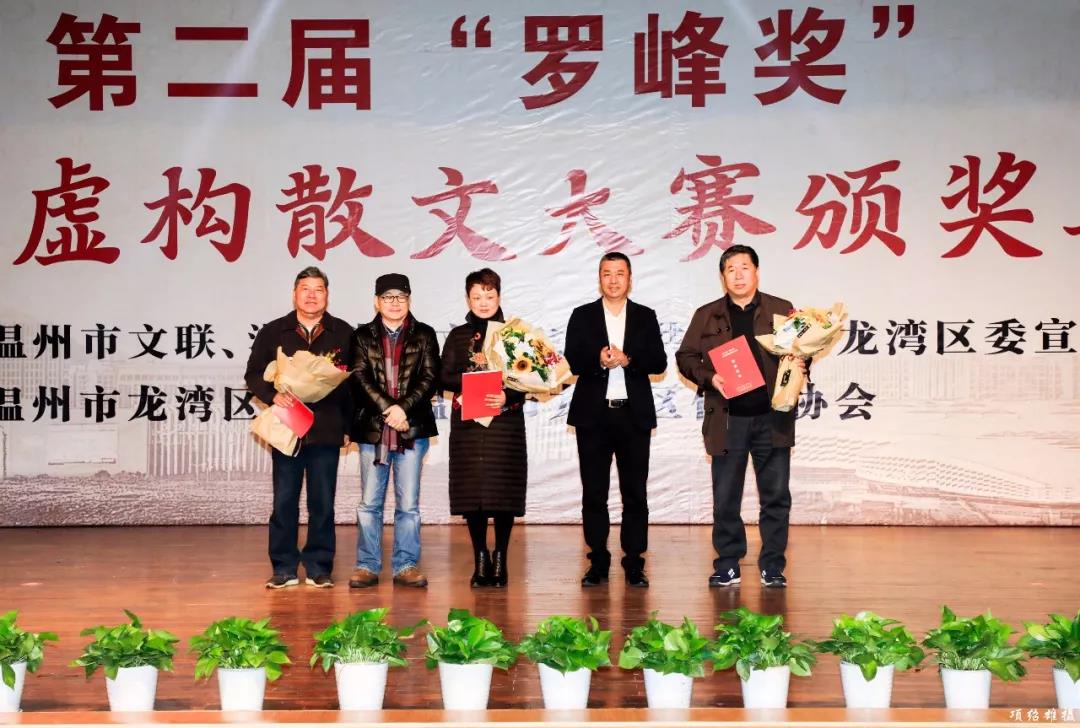 12月13日下午,第二届“罗峰奖”全国非虚构散文大赛颁奖典礼在龙湾中学报告厅举行。浙江省文联副主席、温州市文联主席邹跃飞,龙湾区委常委、宣传部部长陈林彬,浙江省作协副主席、浙江省散文学会会长陆春祥,浙江省散文学会常务副会长、浙江省作协散文杂文创委会主任马叙,浙江省散文学会常务副会长、浙江省作协创研部主任苏沧桑,温州市文联党组成员、秘书长曹凌云,温州市龙湾区文联主席张明春等领导,第二届“罗峰奖”获奖者代表,区作协部分会员,文学爱好者,龙湾中学师生500余人参加。