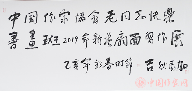 吉狄马加为电竞竞猜老同志快乐书画班2019年新春扇面习作展题词