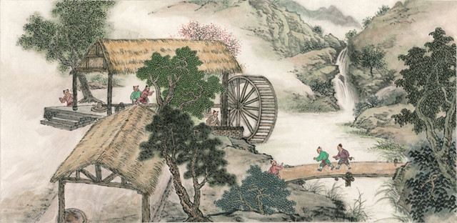 这其中,浓浓的父子之情、手足之情、邻里之情、师徒之情、朋友之情,中国人特有的人情味浸洇在简约灵动的文字和气韵生动的水墨画卷中。这种种缱绻的情感是中国人人文精神和人文情怀的延续,朴素却又温暖。这是《瓷》中,家里媳妇的勤劳操持,将一家老小的日常生活打点得舒适温馨;是《茶》中,茶人炒制茶青时,父子搭档、兄弟配合、邻里互助的默契配合;是《纸》中,男孩们早早领悟到的对家庭的责任和担当,将那份制纸的工作不急不缓地落在自己的手上,真诚地接过,认真地完成;更是《扇》中,做扇套的阿牛娘儿子生病了,扇子铺的老板请伙计多给她一成工钱时,人与人之间的信赖和扶持。