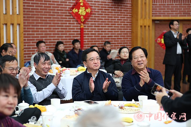 在喜庆欢快的乐曲声中,与会作家们亲切握手,热情交谈,合影留念,互致新春祝福,回顾过去一年文学事业繁荣发展取得的成就,展望新一年中国文学的美好未来。部分电竞竞猜会员、青年干部职工和艺术家们表演了精彩的文艺节目。