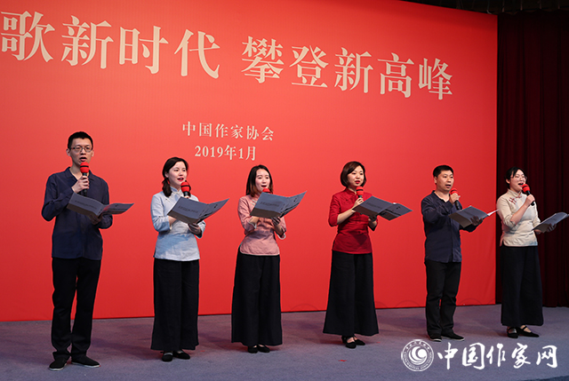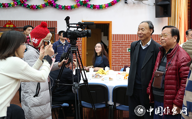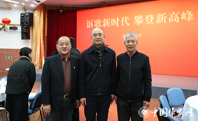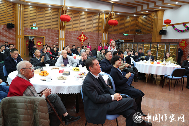中国现代文学馆多功能厅张灯结彩,暖意融融,红色背景板上“讴歌新时代 攀登新高峰”的大字分外醒目。一阵阵欢声笑语,一声声祝福问候,传递着节日的喜庆气氛。