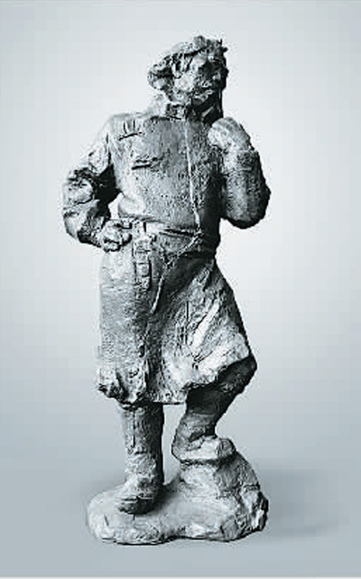 入展作品中,特别吸引观众的还有吴为山的人物雕塑《大草原》。2018年,作者去内蒙古大草原体验生活,画了许多速写。蒙古族朋友生活的质朴、为人的厚道、情感的真诚,深深打动了他。有位蒙古族摔跤手身材魁梧、手脚粗大、性格豪爽、心胸豁达,其铁塔般的体态,使吴为山产生了创作灵感。在这件《大草原》雕塑中,这位摔跤手犹如一座大山,从大草原生长出来,沐浴在热烈的阳光下,稳稳地与大地连为一体,与人民扎根一处,坚如磐石,豪情万丈,成为大草原的一种视觉符号与文化象征。吴为山以他为模特作画,还成为了朋友。