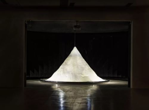 《沙器》 武宁亚 纯白海沙、沙漏、不锈钢构件 360 x 240cm 2018
