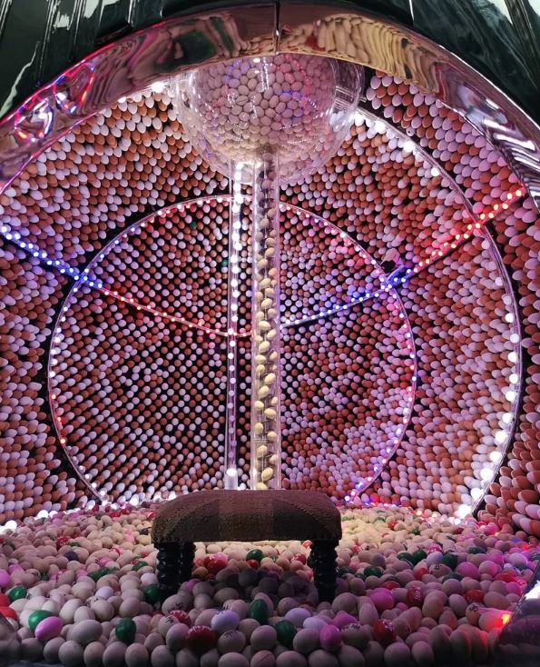 《宫巢》 不锈钢、人工水晶、机械装置、手工蛋 560 x 420 x 380cm 2018