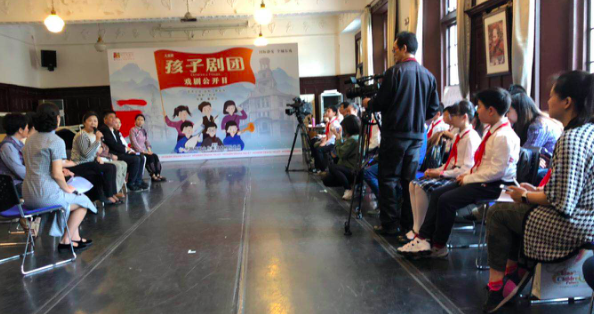 今年是建国70周年,也是少先队建队70周年。看完排练之后,参加活动的少先队员们和剧中的演员做了一次对谈。少先队员先向演员们学习了剧中的快板和唱词,几个小朋友都觉得快板学起来并不比弹钢琴简单,左右手要配合还要嘴上说唱,他们对“小战士”的艺术水平竖起了大拇指。作为一堂别开生面的“队课”,对谈活动中还请来了“孩子剧团”的原型“新安旅行团”的团员张承明。孩子们了解到,上海沦陷后,奉党组织之命,孩子剧团撤离上海奔赴大后方。他们从上海出发,行程2万多里,一路演戏,一路歌唱,宣传抗日,唤醒民众,孩子剧团起于上海,归于延安。“抗日战争血泊中产生的一朵奇花”,这是一九三八年茅盾在武汉时为“孩子剧团”写的一句赞语。