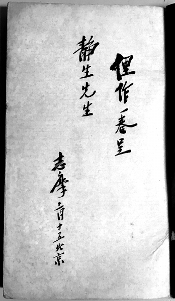 《志摩的诗》一册,民国排印线装本。徐志摩生前自己编过三本诗集:《志摩的诗》《翡冷翠的一夜》和《猛虎集》,《志摩的诗》为他的第一本诗集。此书用宣纸印,竖排右翻,四周双边,没有鱼尾,铅字为中华书局聚珍仿宋版字体,196页,当为初版。此册扉页有徐志摩亲笔手题“俚作一卷呈静生先生。志摩三月十五北京”。静生先生,或为范静生,民国著名教育家,曾于1912年、1916年和1920年三度出任中华民国教育总长,在徐志摩致陆小曼的信中,也提及过范静生。初版诗集本已十分稀见,此册兼有作者签赠,其珍贵何须赘言。