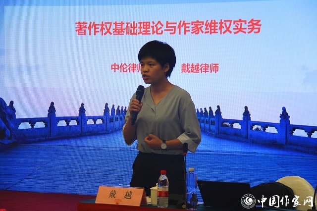 “作品是否被侵权,前提是要判断出它是否为法律意义上的作品。”在专题讲座《著作权基础理论与作家维权实务》中,律师戴越将作品类型分为文字作品、口述作品、音乐作品、戏剧作品、曲艺作品、舞蹈作品、杂技艺术作品、美术作品等十三类,强调作品的最低限度的独创性“要体现作者的思想或情感”或者“具有事实汇编类信息”的特征。作品的权利人可以通过署名、著作权登记证书、委托合同、创作过程稿等形式证明。
