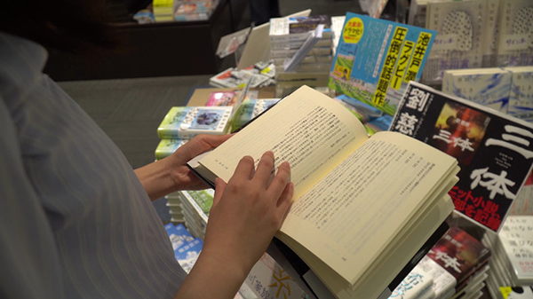 日本读者在书店翻看《三体》。来源:视频截图