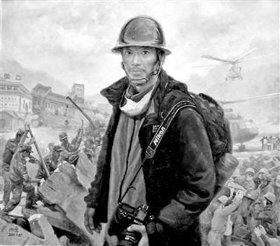 我这次参展作品的最后一幅是《北青报记者在“前线”》。我画了这么多历史上的老报人、名记者,也应该画新时期的年轻新闻人。所以画了汶川大地震,北青报记者崔峻在震中映秀镇的工作状态。以“前线”命名还是同事杨信的提议,新闻现场之于记者,就是战士的前线。他还和我打镲,说老焦画了这么多新闻工作者,就最后一个还活着。