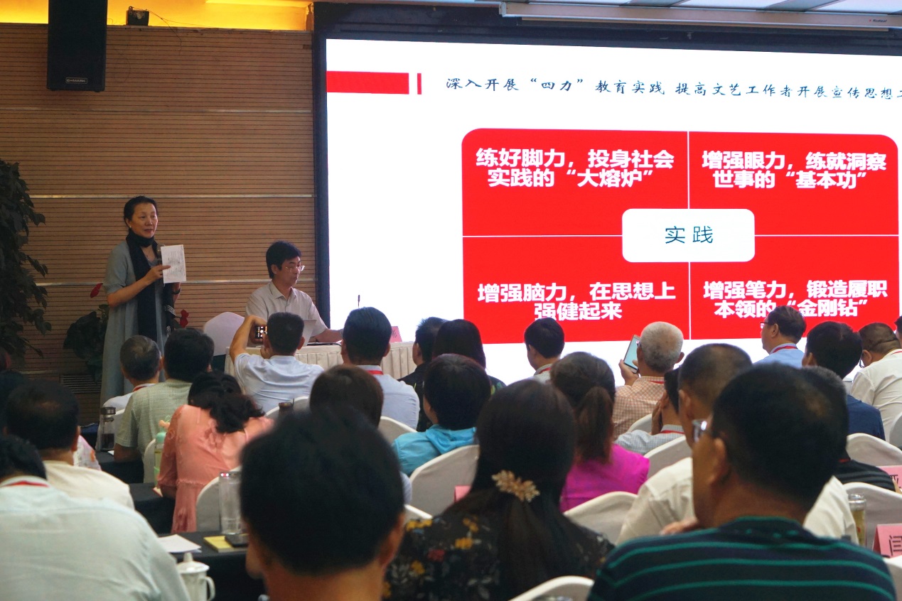 培训期间,李彬以《深入开展“四力”教育实践 努力打造文艺工作者开展思想政治工作的过硬素质》为题进行专题授课,从重视文艺宣传工作是电竞竞猜党一以贯之的优良传统、增强“四力”是新时代对增强思想政治工作的热切呼唤、新时代增强“四力”的本质要求、新时代增强“四力”的路径四方面进行讲解,深入浅出地分析,鼓励学员们“走下去,到人民群众中,去发现问题”,提出“经过反思、思考、组织、提炼、分析、辨别、发现问题,然后再拿出解决问题的办法这一过程,就是践行‘四力’的过程”。
