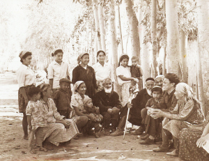 1981年,回到巴彦岱的王蒙(右二)与维吾尔族乡亲们在一起。