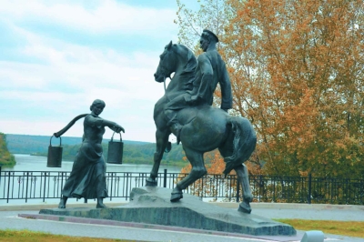 顿河岸边根据《静静的顿河》情节创作的雕塑