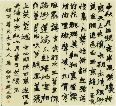 ÕÔ֮ǫ¡¶ÖÐÇïÊ«¡·ËÄÌõÆÁ£¬Ã¿Ìõ×Ý145ÀåÃ×£¬ºá37.5ÀåÃס£
